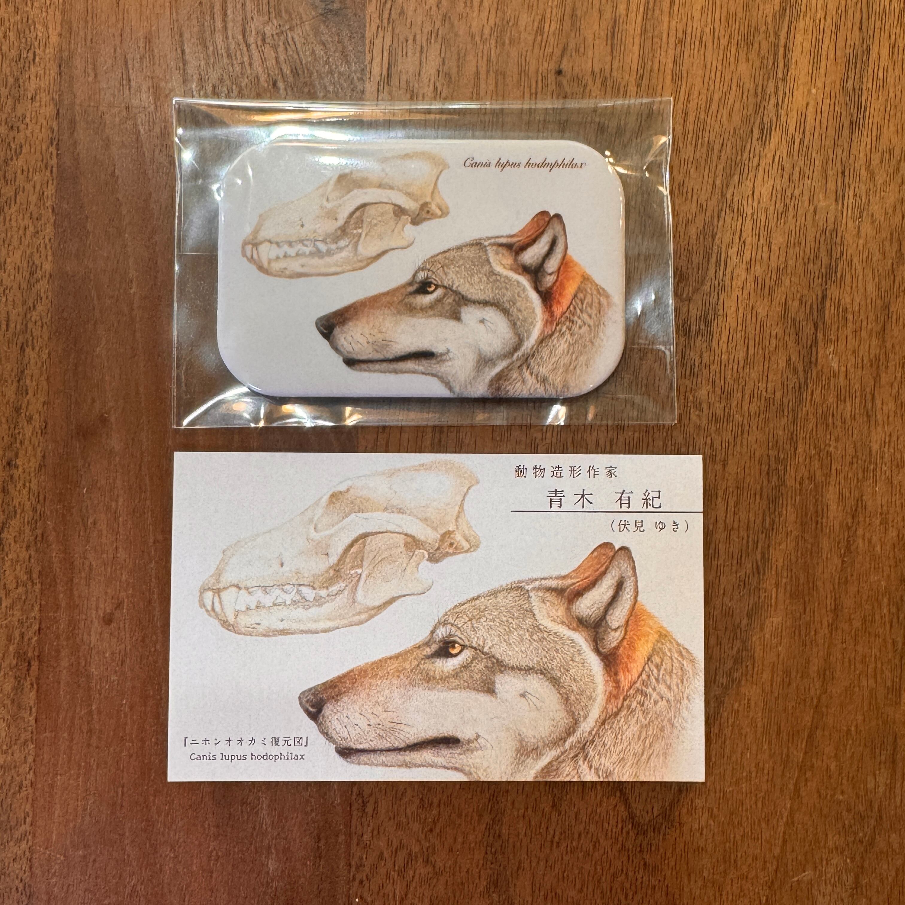 ニホンオオカミの復元画を描き、缶マグネットに印刷いたしました。