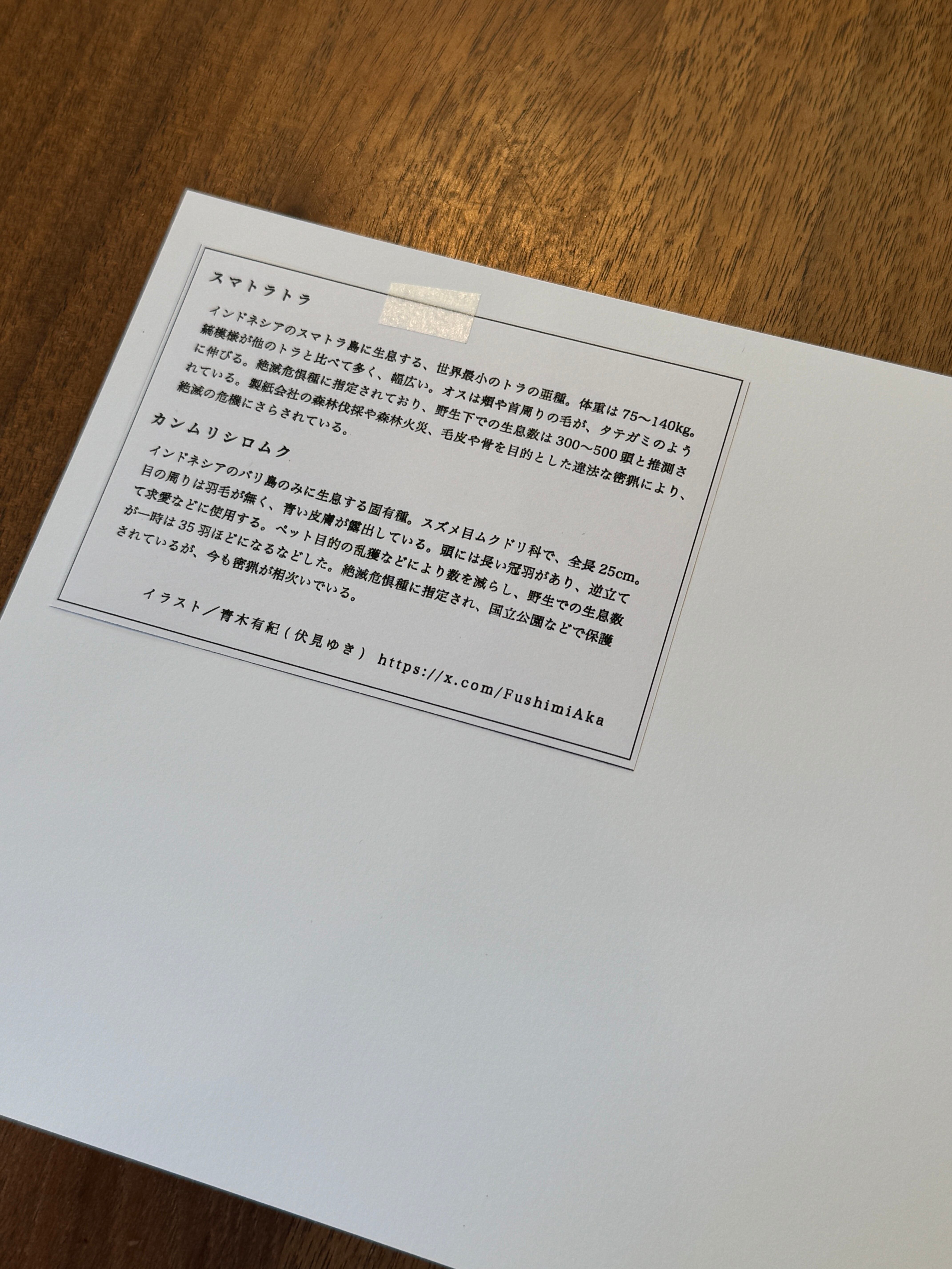 【スマトラトラ カンムリシロムク イラストカード B6size】