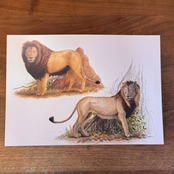 アフリカライオンとインドライオンを、水彩絵具とアクリル絵具で描き、印刷所にて印刷しました。